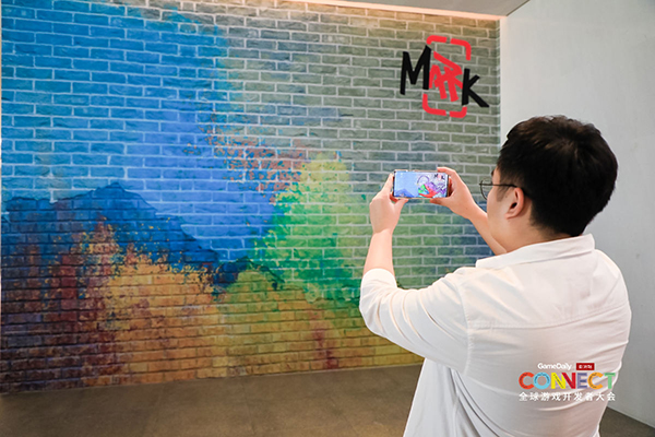 大會期間,騰訊云、騰訊廣告、字節(jié)跳動旗下巨量引擎等30多家行業(yè)上下游企業(yè)參展,展示最新行業(yè)前沿技術(shù),實現(xiàn)行業(yè)生態(tài)賦能。其中,創(chuàng)夢天地展臺的Mark AR吸引了大群人的圍觀。Mark AR是創(chuàng)夢天地與《地鐵跑酷》開發(fā)商SYBO合作推出全新的AR社交app,運用了谷歌最新的AR技術(shù)Cloud Anchors,使用戶可以在真實世界中創(chuàng)造、發(fā)現(xiàn)并與他人分享AR作品。